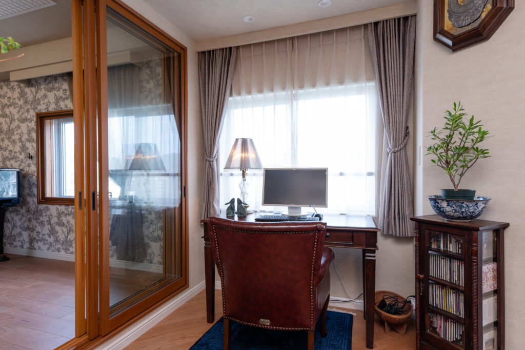 閉鎖的だった空間が開放的になり、素敵な書斎スペースとなりました。